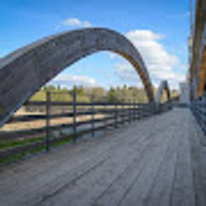 Hilly landscape known for cycling, with wooden bridges over ravines